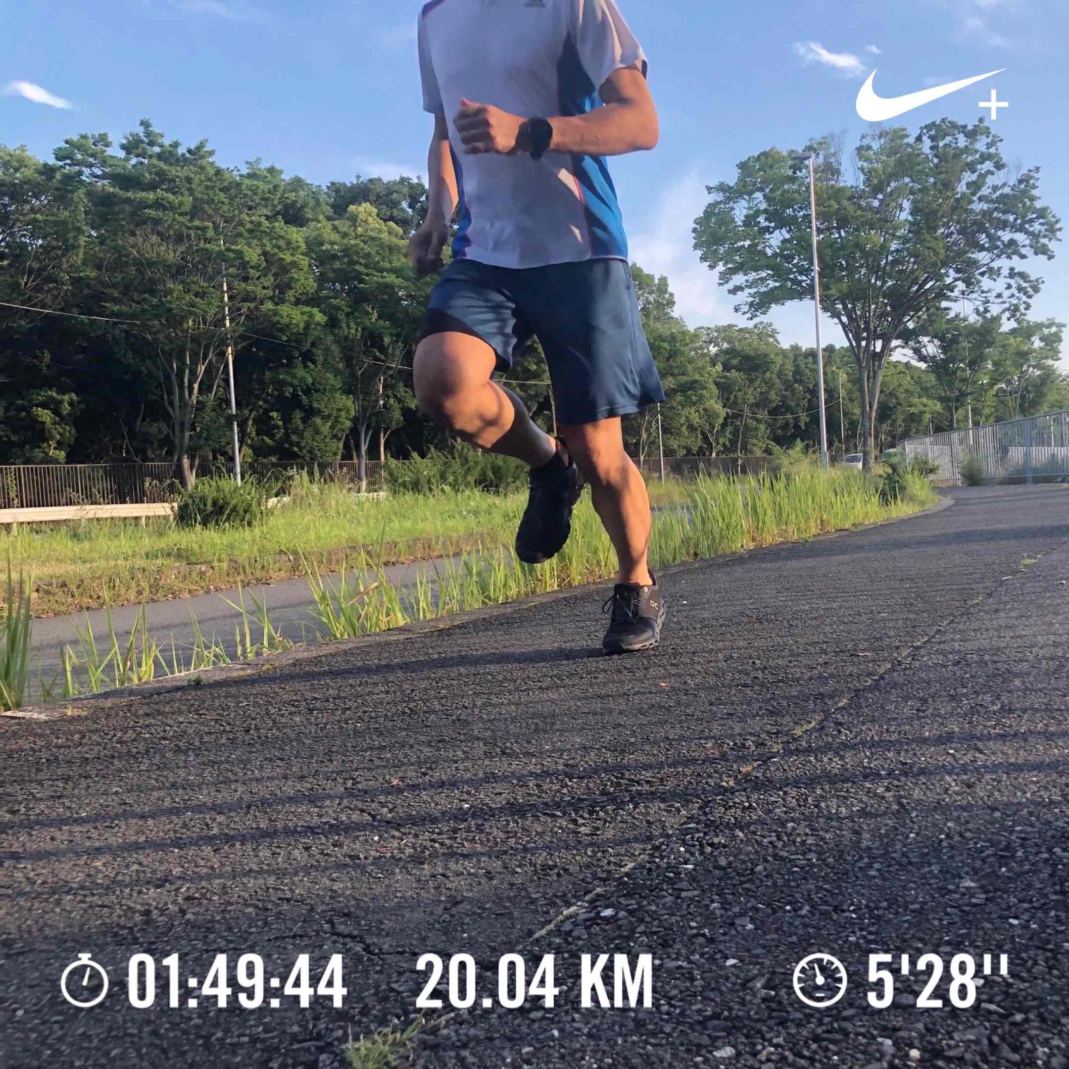 今日のトレーニングは、20㎞ペース走(キロ5’30”ペース)。