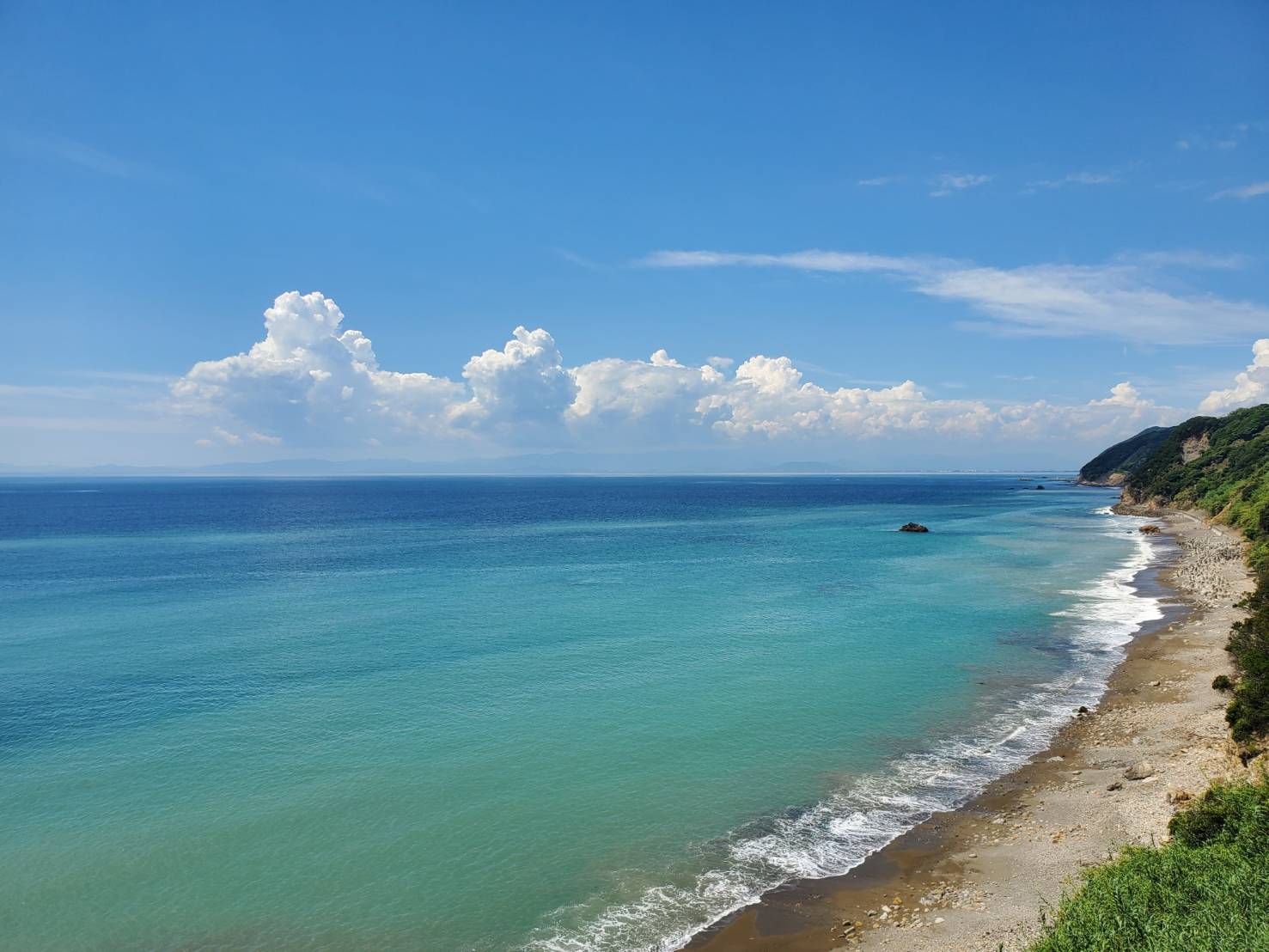 台風来襲前の強烈な日差しと高温の中、起伏の激しい南回りコースを選択。